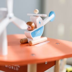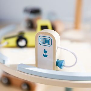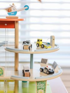 W zestawie znajdują się także 4 drewniane pojazdy: policyjny, laweta, autobus oraz helikopter, które doskonale komponują się z parkingiem i zapewniają godziny kreatywnej zabawy. Zabawka wspiera rozwój motoryczny, logiczne myślenie oraz wyobraźnię dziecka, zachęcając do zabawy w symulację rzeczywistych sytuacji drogowych i lotniczych. 🛻🚓🚌🚁