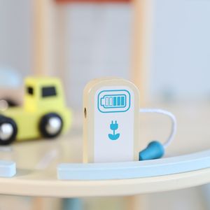 Garaż wyposażony jest w ruchome elementy, takie jak winda, która umożliwia przemieszczanie pojazdów pomiędzy piętrami, oraz kręty zjazd, którym samochody zjeżdżają na dół. Zabawka posiada również stację ładowania pojazdów elektrycznych, gdzie dzieci mogą umieszczać końcówkę dystrybutora w specjalnym otworze w samochodach. 🚗🔋