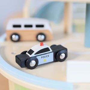 - W zestawie 4 drewniane pojazdy: policyjny, laweta, autobus, helikopter 🚔🛻🚌🚁
