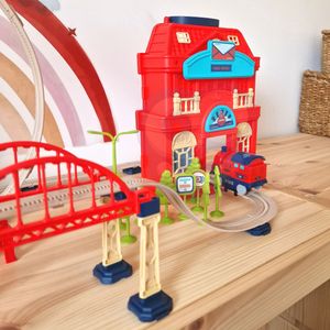 Walizka pełni podwójną funkcję – jest praktycznym opakowaniem 🎁 i jednocześnie elementem torowiska, tworząc dwa budynki 🏠🏠. Zabawka jest w pełni bezpieczna i przeznaczona dla dzieci od 3 roku życia 👶.
