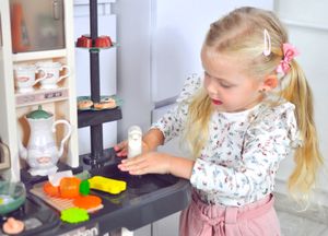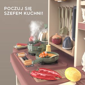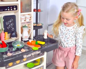 Realistyczna, wielofunkcyjna kuchnia dla dzieci z 65 akcesoriami, efektami świetlno-dźwiękowymi i „zimną parą”, idealna do kreatywnej zabawy w gotowanie od 3 roku życia. 🍳🥕