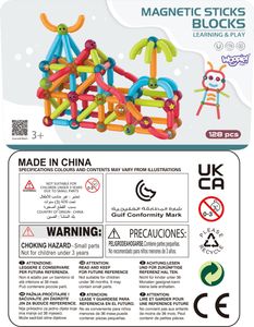 - 128 elementów: klocki magnetyczne, kulki i patyczki