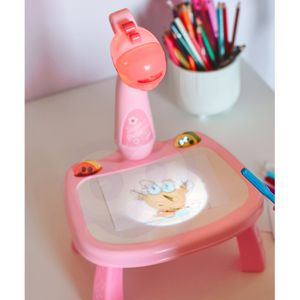 Kreatywna tablica z projektorem od WOOPIE pozwala dzieciom od 3. roku życia rysować 36 różnych wzorów (zwierzątka 🦁, pojazdy 🚗, owoce 🍎). Zestaw zawiera stolik z tablicą 🖋️, projektor 🦒, 12 mazaków ✏️, gąbkę 🧽 i książeczkę do rysowania 📖.