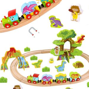 TOOKY TOY Drewniana Magnetyczna Kolejka Dinozaury Figurki
