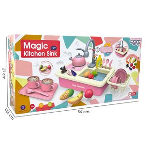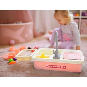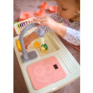 Zlewozmywak Kuchenka 2w1 od WOOPIE 🍳🧽 pozwala dzieciom gotować i zmywać jak prawdziwi rodzice! Zabawka realistycznie odwzorowuje kuchenne czynności, a ruchomy kurek 💧 pozwala lecieć prawdziwej wodzie. Owoce i warzywa 🥕🍎 połączone rzepem można kroić jak prawdziwe produkty, rozwijając odpowiedzialność i samodzielność dziecka.